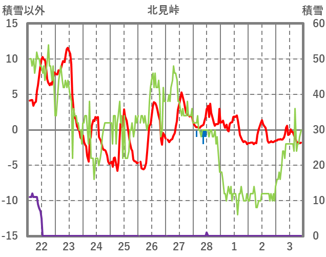 | 日 | 時 | 気温 | 降水 | 風向/風速 | 日照 | 積雪 | 降雪 |
