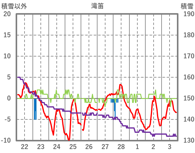 | 日 | 時 | 気温 | 降水 | 風向/風速 | 日照 | 積雪 | 降雪 |