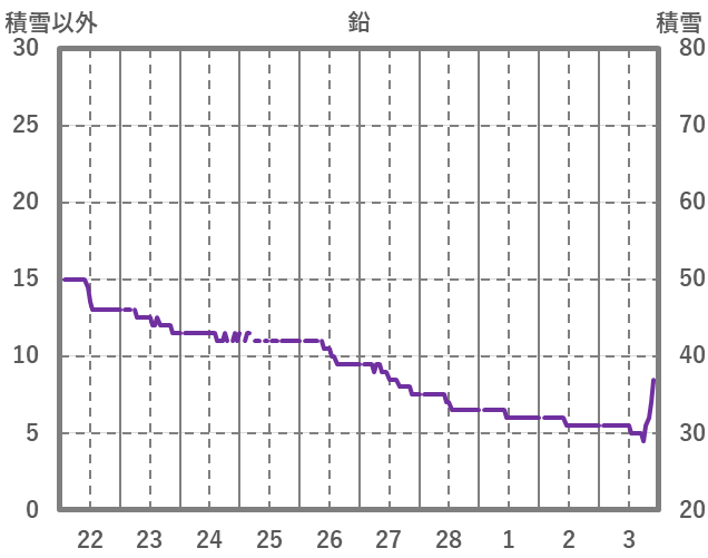 | 日 | 時 | 気温 | 降水 | 風向/風速 | 日照 | 積雪 | 降雪 |