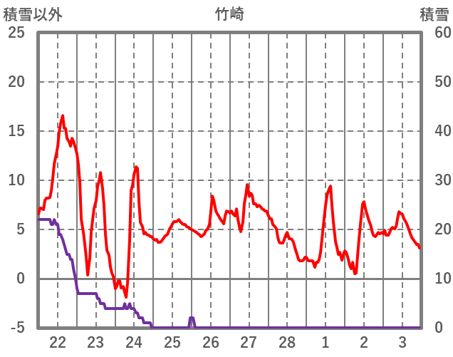 | 日 | 時 | 気温 | 降水 | 風向/風速 | 日照 | 積雪 | 降雪 |