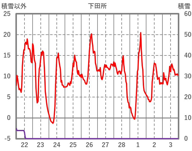| 日 | 時 | 気温 | 降水 | 風向/風速 | 日照 | 積雪 | 降雪 |