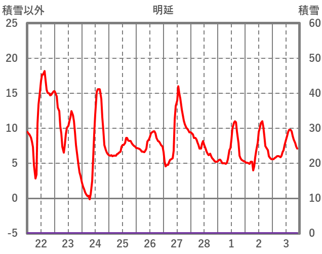 | 日 | 時 | 気温 | 降水 | 風向/風速 | 日照 | 積雪 | 降雪 |