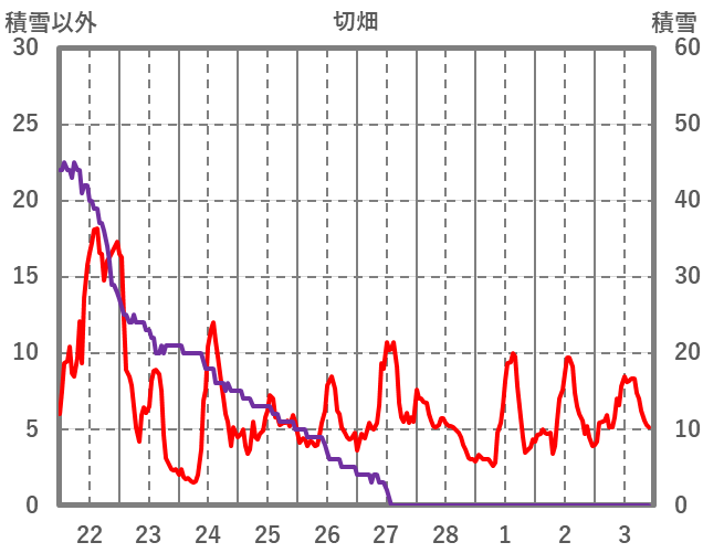 | 日 | 時 | 気温 | 降水 | 風向/風速 | 日照 | 積雪 | 降雪 |