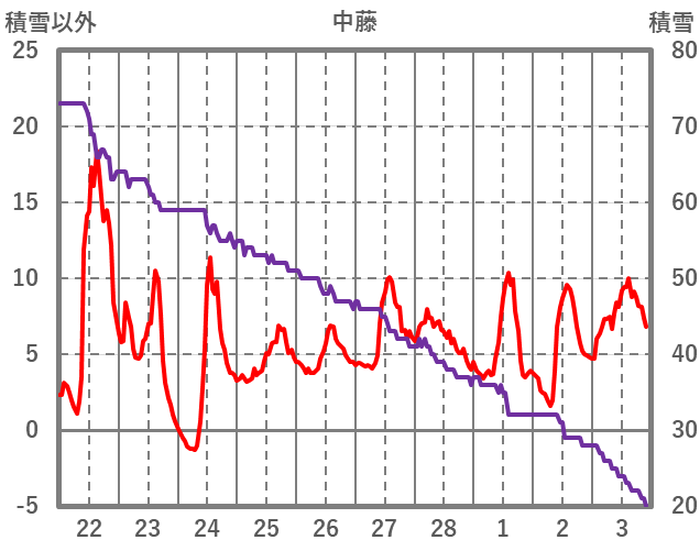 | 日 | 時 | 気温 | 降水 | 風向/風速 | 日照 | 積雪 | 降雪 |