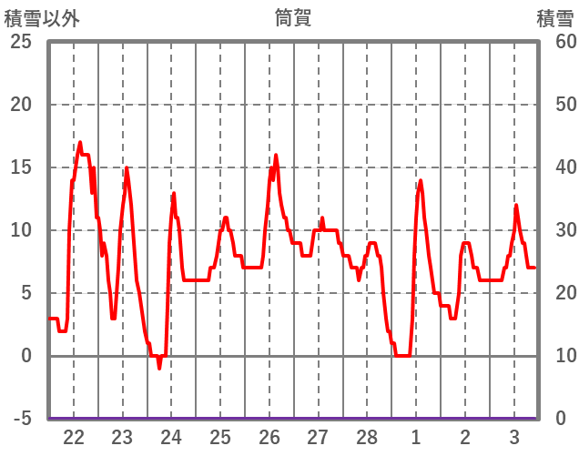 | 日 | 時 | 気温 | 降水 | 風向/風速 | 日照 | 積雪 | 降雪 |