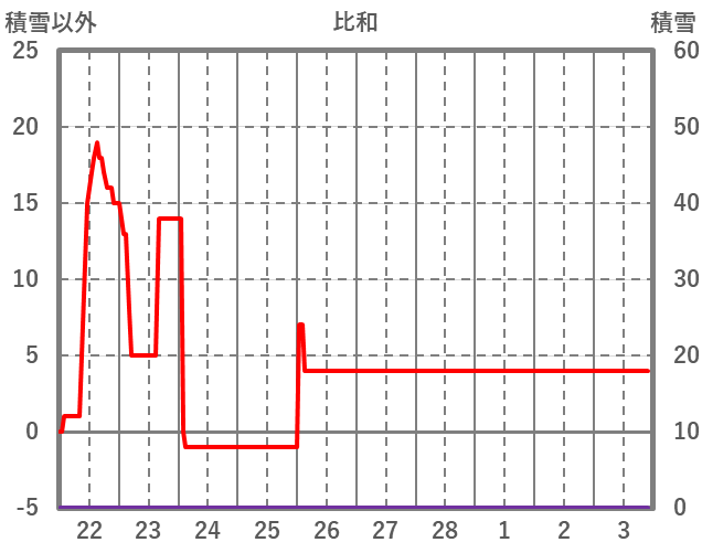 | 日 | 時 | 気温 | 降水 | 風向/風速 | 日照 | 積雪 | 降雪 |