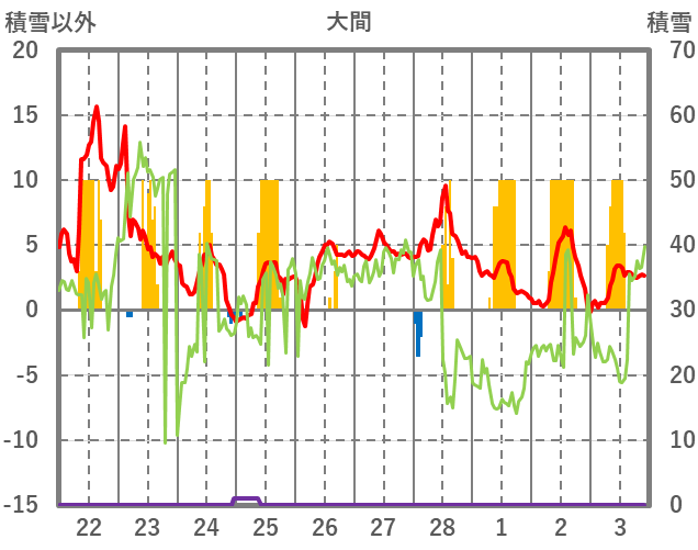 | 日 | 時 | 気温 | 降水 | 風向/風速 | 日照 | 積雪 | 降雪 |
