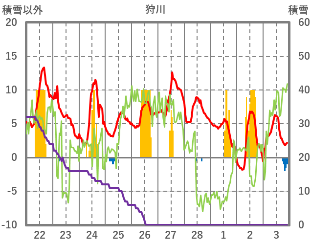 | 日 | 時 | 気温 | 降水 | 風向/風速 | 日照 | 積雪 | 降雪 |
