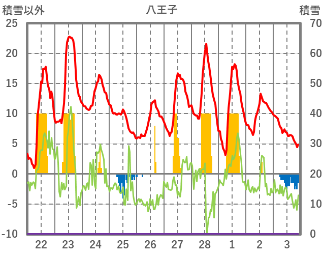 | 日 | 時 | 気温 | 降水 | 風向/風速 | 日照 | 積雪 | 降雪 |