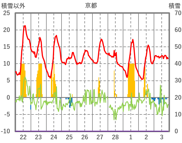 | 日 | 時 | 気温 | 降水 | 風向/風速 | 日照 | 積雪 | 降雪 |