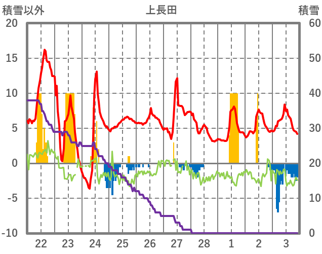 | 日 | 時 | 気温 | 降水 | 風向/風速 | 日照 | 積雪 | 降雪 |