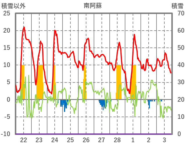 | 日 | 時 | 気温 | 降水 | 風向/風速 | 日照 | 積雪 | 降雪 |