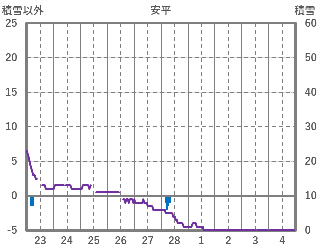 | 日 | 時 | 気温 | 降水 | 風向/風速 | 日照 | 積雪 | 降雪 |