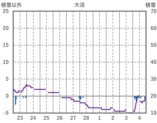 | 日 | 時 | 気温 | 降水 | 風向/風速 | 日照 | 積雪 | 降雪 |