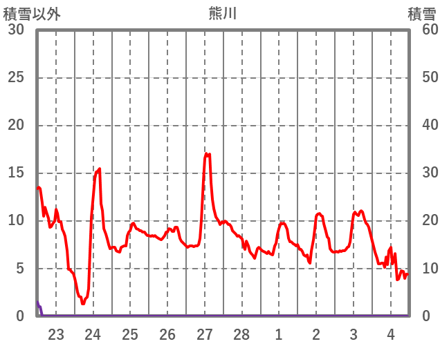 | 日 | 時 | 気温 | 降水 | 風向/風速 | 日照 | 積雪 | 降雪 |