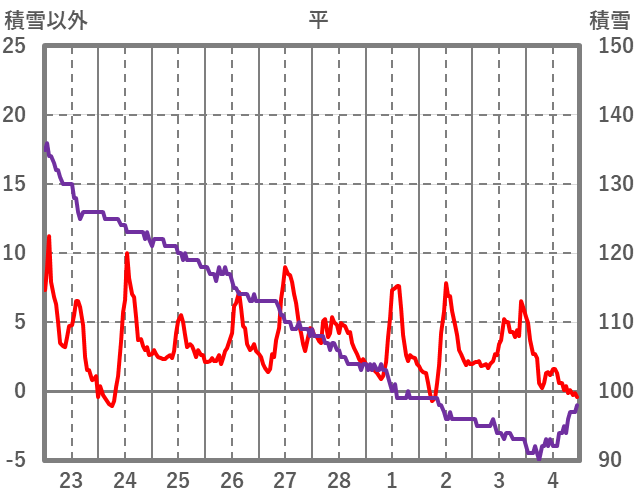 | 日 | 時 | 気温 | 降水 | 風向/風速 | 日照 | 積雪 | 降雪 |