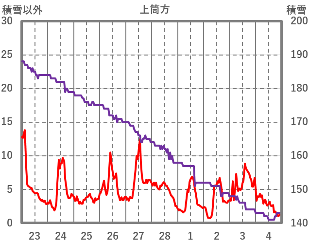| 日 | 時 | 気温 | 降水 | 風向/風速 | 日照 | 積雪 | 降雪 |