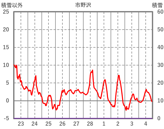| 日 | 時 | 気温 | 降水 | 風向/風速 | 日照 | 積雪 | 降雪 |