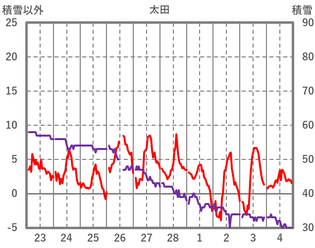 | 日 | 時 | 気温 | 降水 | 風向/風速 | 日照 | 積雪 | 降雪 |