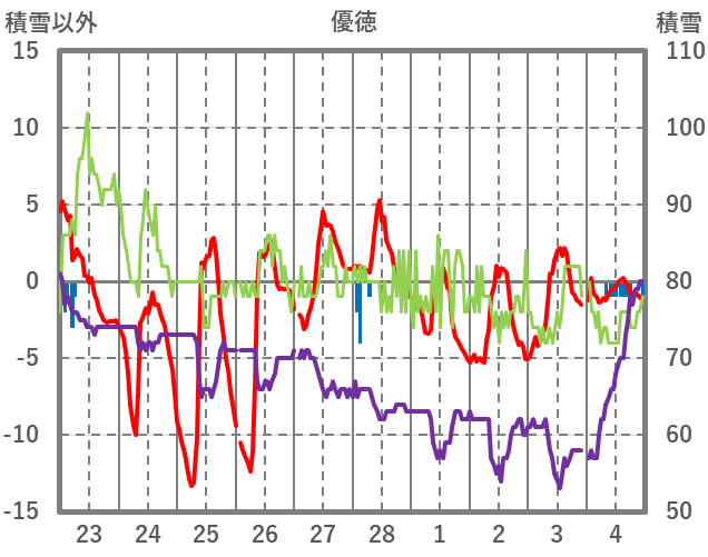| 日 | 時 | 気温 | 降水 | 風向/風速 | 日照 | 積雪 | 降雪 |