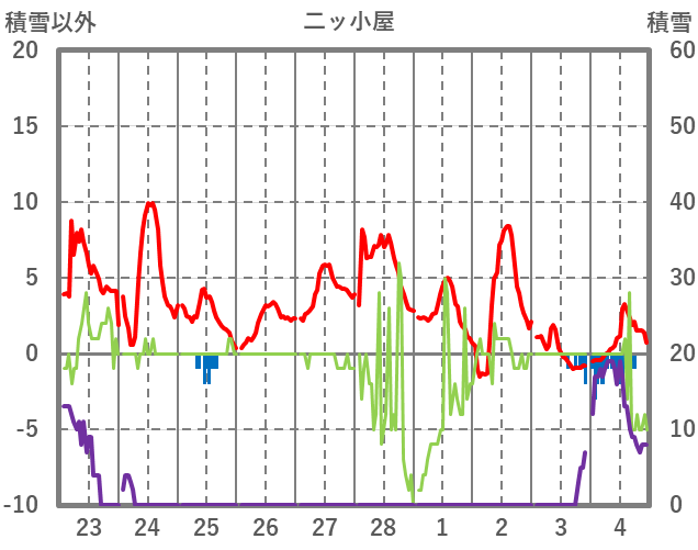 | 日 | 時 | 気温 | 降水 | 風向/風速 | 日照 | 積雪 | 降雪 |