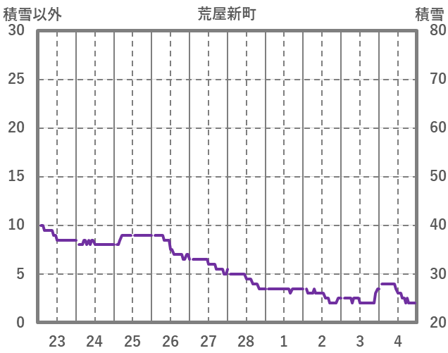 | 日 | 時 | 気温 | 降水 | 風向/風速 | 日照 | 積雪 | 降雪 |