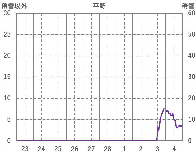 | 日 | 時 | 気温 | 降水 | 風向/風速 | 日照 | 積雪 | 降雪 |