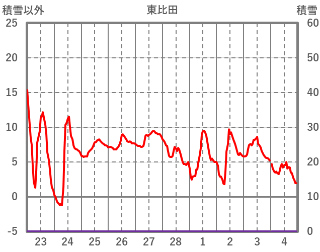 | 日 | 時 | 気温 | 降水 | 風向/風速 | 日照 | 積雪 | 降雪 |