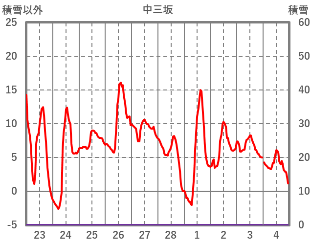 | 日 | 時 | 気温 | 降水 | 風向/風速 | 日照 | 積雪 | 降雪 |
