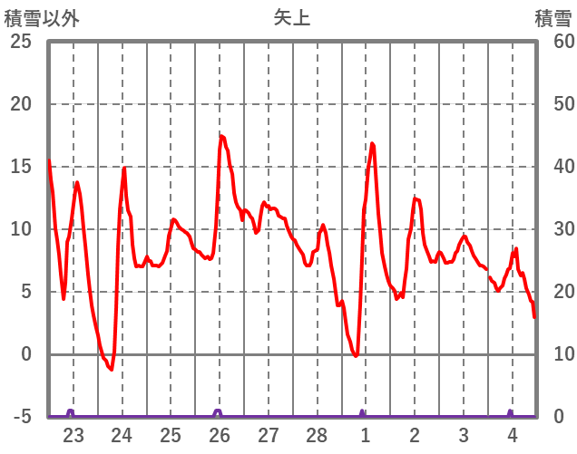 | 日 | 時 | 気温 | 降水 | 風向/風速 | 日照 | 積雪 | 降雪 |