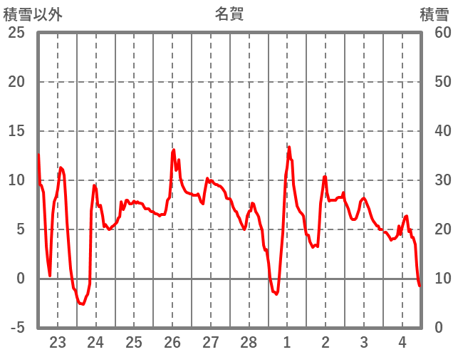 | 日 | 時 | 気温 | 降水 | 風向/風速 | 日照 | 積雪 | 降雪 |