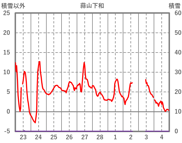 | 日 | 時 | 気温 | 降水 | 風向/風速 | 日照 | 積雪 | 降雪 |