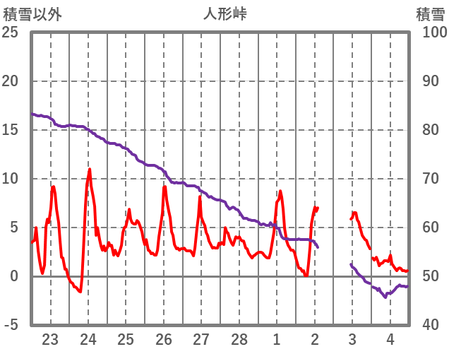 | 日 | 時 | 気温 | 降水 | 風向/風速 | 日照 | 積雪 | 降雪 |