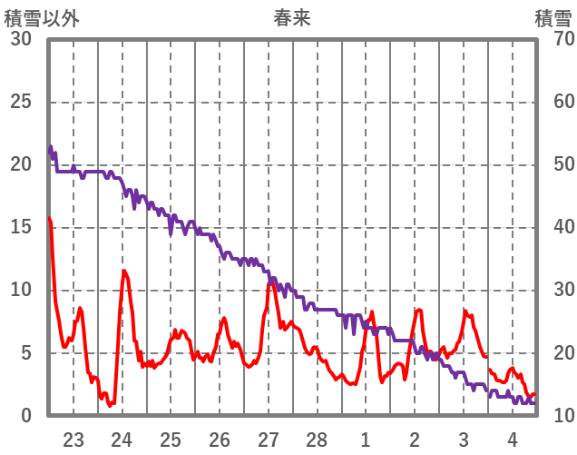 | 日 | 時 | 気温 | 降水 | 風向/風速 | 日照 | 積雪 | 降雪 |