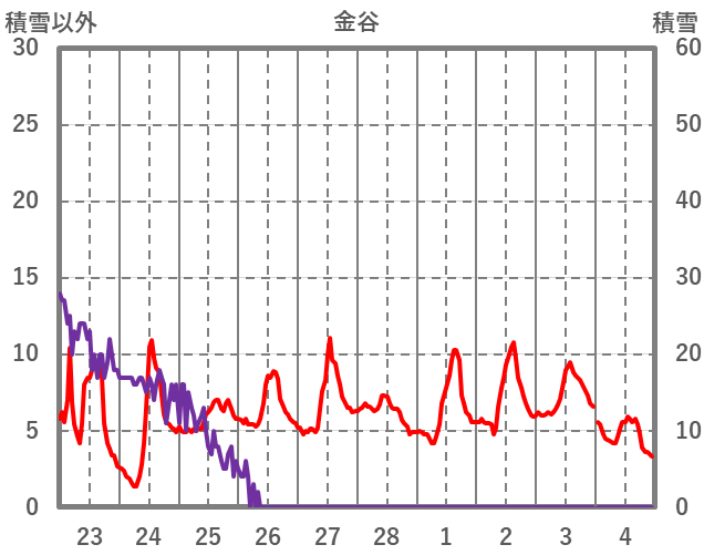 | 日 | 時 | 気温 | 降水 | 風向/風速 | 日照 | 積雪 | 降雪 |
