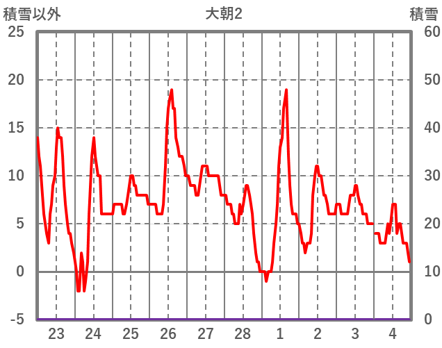 | 日 | 時 | 気温 | 降水 | 風向/風速 | 日照 | 積雪 | 降雪 |