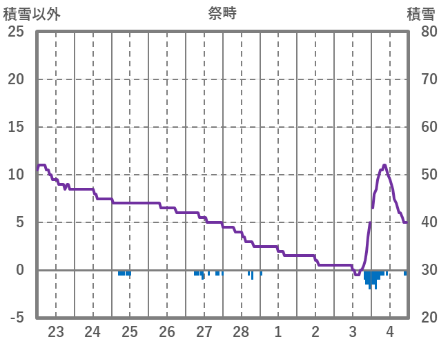 | 日 | 時 | 気温 | 降水 | 風向/風速 | 日照 | 積雪 | 降雪 |