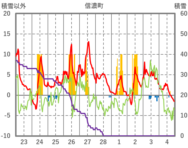 | 日 | 時 | 気温 | 降水 | 風向/風速 | 日照 | 積雪 | 降雪 |