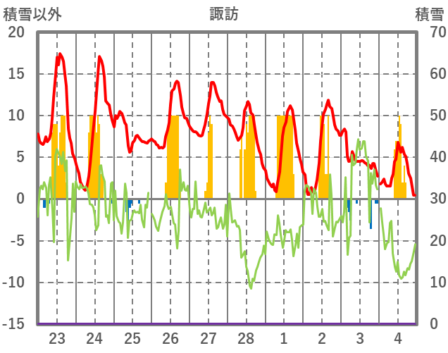 | 日 | 時 | 気温 | 降水 | 風向/風速 | 日照 | 積雪 | 降雪 |