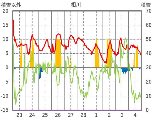 | 日 | 時 | 気温 | 降水 | 風向/風速 | 日照 | 積雪 | 降雪 |