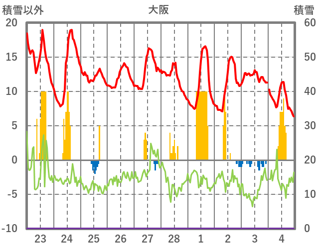 | 日 | 時 | 気温 | 降水 | 風向/風速 | 日照 | 積雪 | 降雪 |