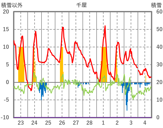 | 日 | 時 | 気温 | 降水 | 風向/風速 | 日照 | 積雪 | 降雪 |