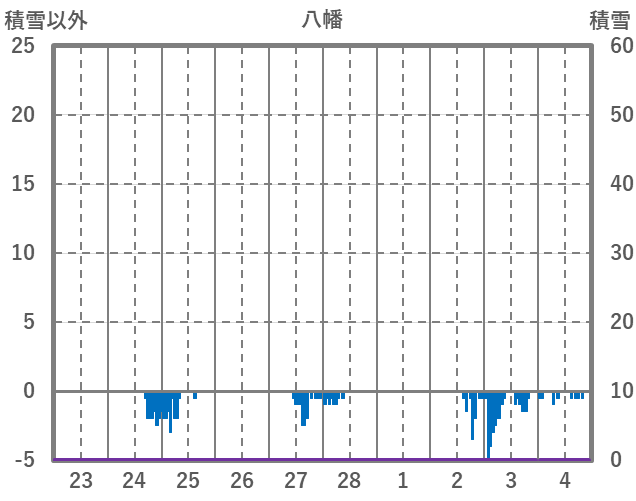 | 日 | 時 | 気温 | 降水 | 風向/風速 | 日照 | 積雪 | 降雪 |
