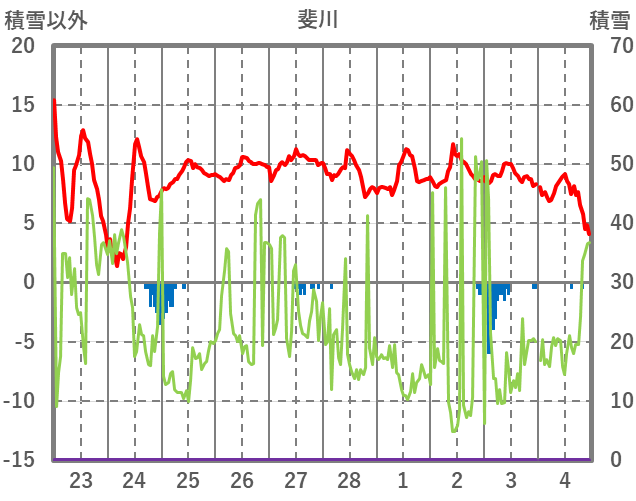 | 日 | 時 | 気温 | 降水 | 風向/風速 | 日照 | 積雪 | 降雪 |