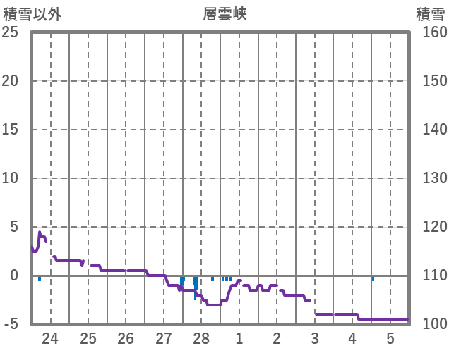 | 日 | 時 | 気温 | 降水 | 風向/風速 | 日照 | 積雪 | 降雪 |