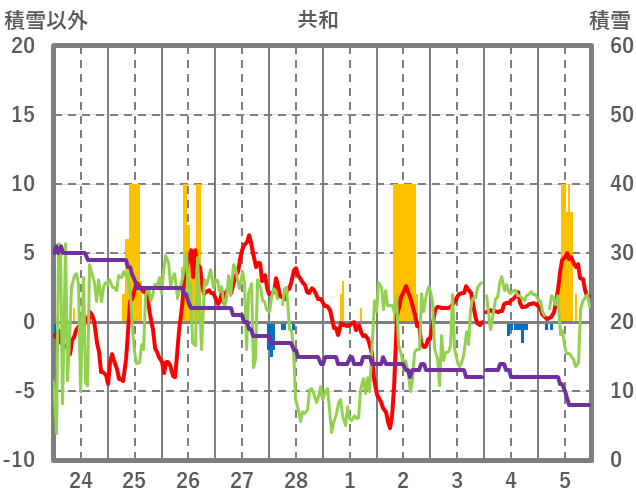 | 日 | 時 | 気温 | 降水 | 風向/風速 | 日照 | 積雪 | 降雪 |