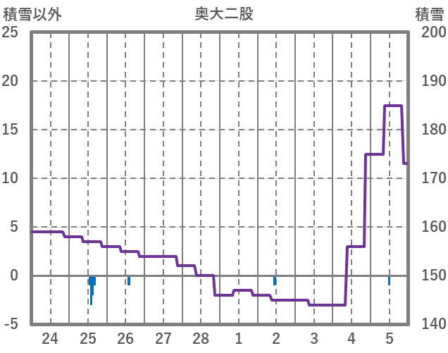 | 日 | 時 | 気温 | 降水 | 風向/風速 | 日照 | 積雪 | 降雪 |