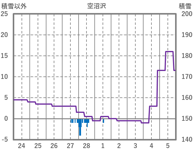 | 日 | 時 | 気温 | 降水 | 風向/風速 | 日照 | 積雪 | 降雪 |