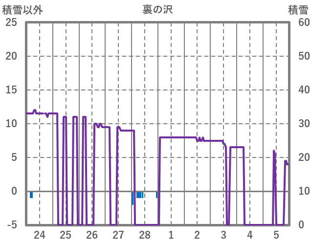 | 日 | 時 | 気温 | 降水 | 風向/風速 | 日照 | 積雪 | 降雪 |