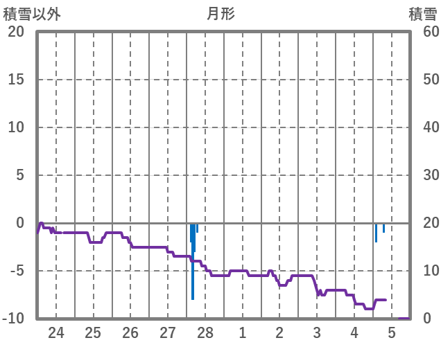 | 日 | 時 | 気温 | 降水 | 風向/風速 | 日照 | 積雪 | 降雪 |